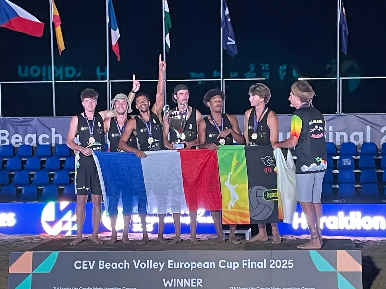 Après un premier round en poule face aux Tchèques de Strahov (les mêmes qui les avaient battus en Slovénie), les Rétais ont montré qu’ils savaient encaisser. Puis vint la demi-finale contre les Ukrainiens, remportée 2-0 après un tie-break digne d’un film hollywoodien. Enfin, la grande finale face aux Néerlandais du ZVH Zevenhuizen s’est soldée par un triomphe 2-1, avec un set en or où Joadel et Niels ont fait tourner le sable comme des pros.